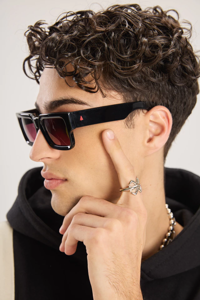 Armazón de acetato de celulosa hipoalergénico, trabajado de forma artesanal; el color negro es parte del material, no está pintado. Bisagras de alpaca para confort y durabilidad. Lentes polarizadas UV400 (Cat. 3) bajo norma EN ISO 12312-1:2013+A1:2015: reducen reflejos y protegen la visión de los rayos solares con los mas altos estandares de calidad. 🌑🗡️🩸