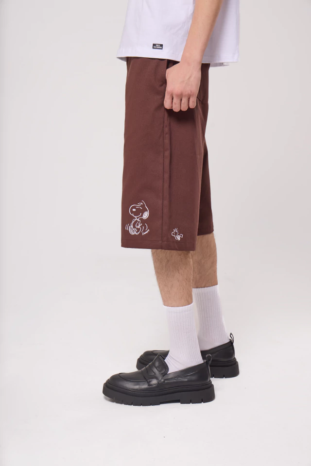 Bermuda de gabardina con 2 bolsillos laterales y 2 traseros, cintura con elástico en la parte posterior para mejor calce. Bordados oficiales de Snoopy y Woodstock 🐶🐥.