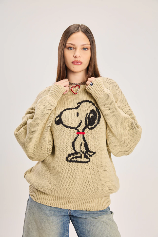 Snoopy tejido en la misma prenda para que dure como el mismo sweater 🐾.