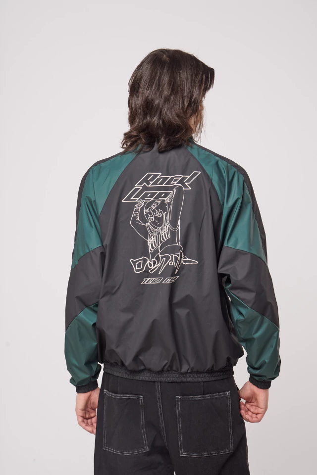 Estampa serigráfica + recortes verdes con movimientos taijutsu. 🌪️🥋.